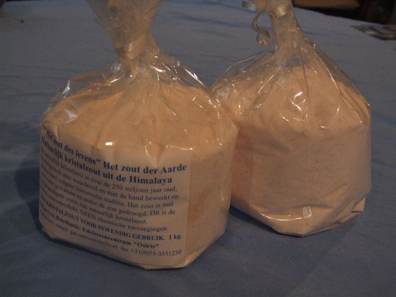 ‘Het echte zout, wat de Aarde ons biedt’…. Het zout der Aarde uit de hoogste bergen, dicht bij de Hemelen, moet u maar denken….. een Godsgeschenk. Zout wat een dagelijkse levensbehoefte is. Dit kristalzout is tevens zout wat uw lijf en leden ‘goed doet’ in heel veel opzichten. Er zijn de afgelopen jaren zeer opmerkelijke ervaringen genoteerd. Dit zout wordt door ons lichaam a.h.w. ‘herkend’; het bevat lichaamseigen elementen. Zout wat wij dagelijks in ons eten gebruiken is niet alleen nodig om ons voedsel ‘hartig’ te maken; zout heeft veel meer invloed dan we maar denken.